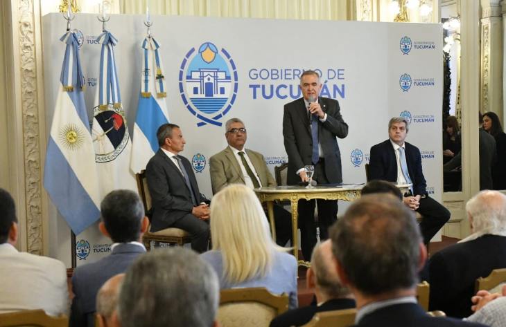 El gobernador, Osvaldo Jaldo, encabezó el acto de presentación del Balance de la Actividad Sucroalcoholera 2024, celebrado en el Salón Blanco de Casa de Gobierno.