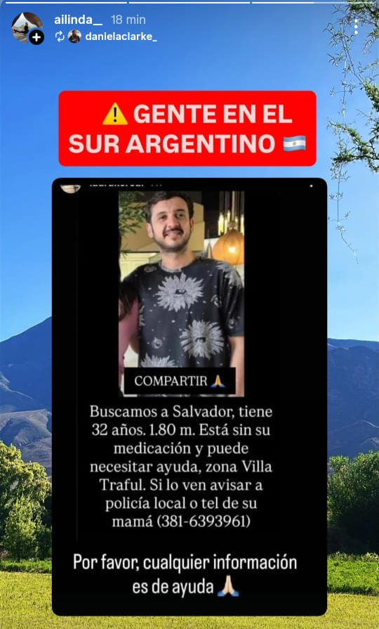 El jueves, su novia Ailín Scalella brindó detalles sobre la desaparición y la situación previa al hecho. “Hace más de un mes que está de viaje por el sur, por la zona de Bariloche, San Martín de los Andes. Siempre tuvimos comunicación con él y sabíamos dónde estaba. En el sur hay un primo de él y amigos”, explicó a eltucumano.com.