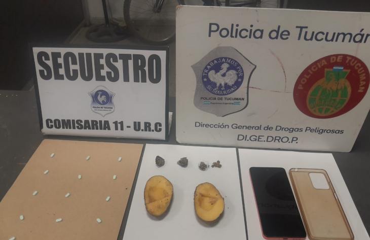 El personal policial realizó la requisa correspondiente y llamó la atención que la muchacha insistiera con ingresar una bolsa con verduras. Por eso revisaron minuciosamente cada una de ella, al partir la papa notaron que tenía un hueco en el medio y ahí estaban escondidas las sustancias. Por ese motivo tomó intervención el personal de la Dirección Drogas Peligrosas Capital.