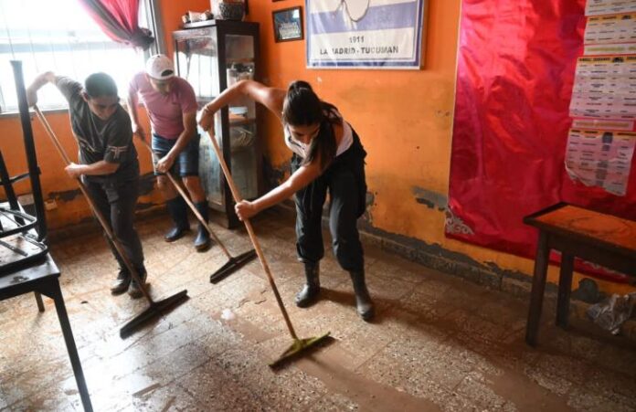 En el marco del operativo que impulsó el Gobierno de Tucumán para asistir a la comunidad de La Madrid, tras las recientes inundaciones, equipos de municipios y comunas colaboraron este sábado con tareas de limpieza y recuperación en distintos sectores de la localidad. La intendenta de Aguilares, Gimena Mansilla, participó de las labores en la Escuela N°71.