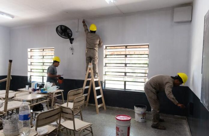 El Ministerio de Obras, Infraestructura y Transporte Público ejecuta trabajos integrales de pintura y mantenimiento en el establecimiento de Yerba Buena, asegurando óptimas condiciones para el inicio del próximo ciclo lectivo.