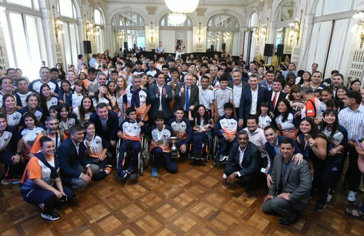 Jaldo agradeció la colaboración de padres y entrenadores y expresó: “Al margen de las medallas y de las copas, la participación ha sido lo más importante. Por eso, en cada municipio, comuna, barrio y club a la que ustedes pertenecen, cuenten las vivencias que han tenido todos estos días. Tienen que transmitir a los otros chicos sus vivencias. Cuando uno se pone metas y objetivos, en todos los órdenes de la vida, pero fundamentalmente en lo deportivo, con esfuerzo, sacrificio y constancia, se puede conseguir logros. Pero también nos tienen que ayudar a contagiar a muchos otros niños y jóvenes que los queremos acá, también en el Salón Blanco, junto con ustedes, participando y practicando diferentes disciplinas”.