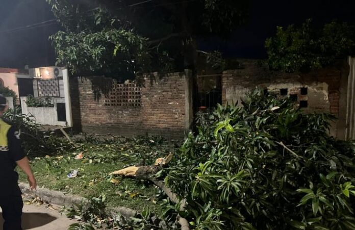 El primer procedimiento se registró en la madrugada de este sábado, luego que una llamada al Sistema de Emergencia 911, alertara sobre la caída de un árbol que impedía la salida de una mujer y su hija menor del interior de su casa ubicada en calle Florida al 1400. En el lugar ya se encontraba trabajando personal de Defensa Civil y Edet. Afortunadamente, lograron cortar el árbol, de gran porte, y liberar el acceso al domicilio.