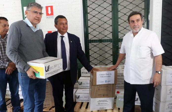 En el depósito central del Ministerio de Salud Pública se realizó la entrega de 40.000 repelentes y un contenedor con insumos de citronela destinados a 21 comunas y dos municipios del interior, en el marco de las acciones de prevención contra el dengue y chikungunya. El acto fue encabezado por el ministro de Salud Pública, doctor Luis Medina Ruiz, junto al ministro del Interior, Darío Monteros, con la presencia de delegados comunales y autoridades del Poder Ejecutivo. La iniciativa se desarrolló gracias al apoyo del gobernador Osvaldo Jaldo para fortalecer las medidas de cuidado y prevención en toda la provincia.