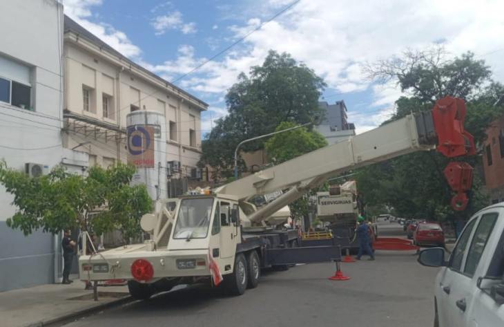 El nuevo tanque que se coloca en el Hospital Padilla es producto del cambio de empresa luego de una licitación realizada a tal efecto.